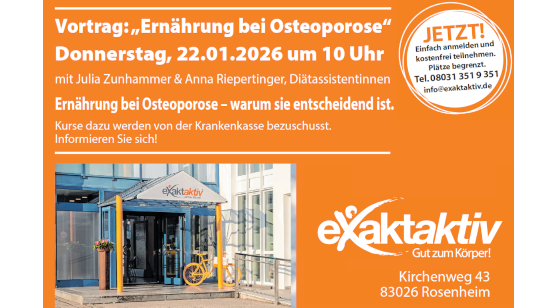 Kostenfreier Vortrag im exaktaktiv in Rosenheim
